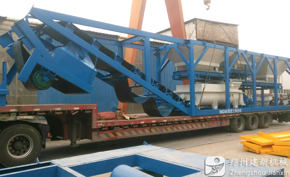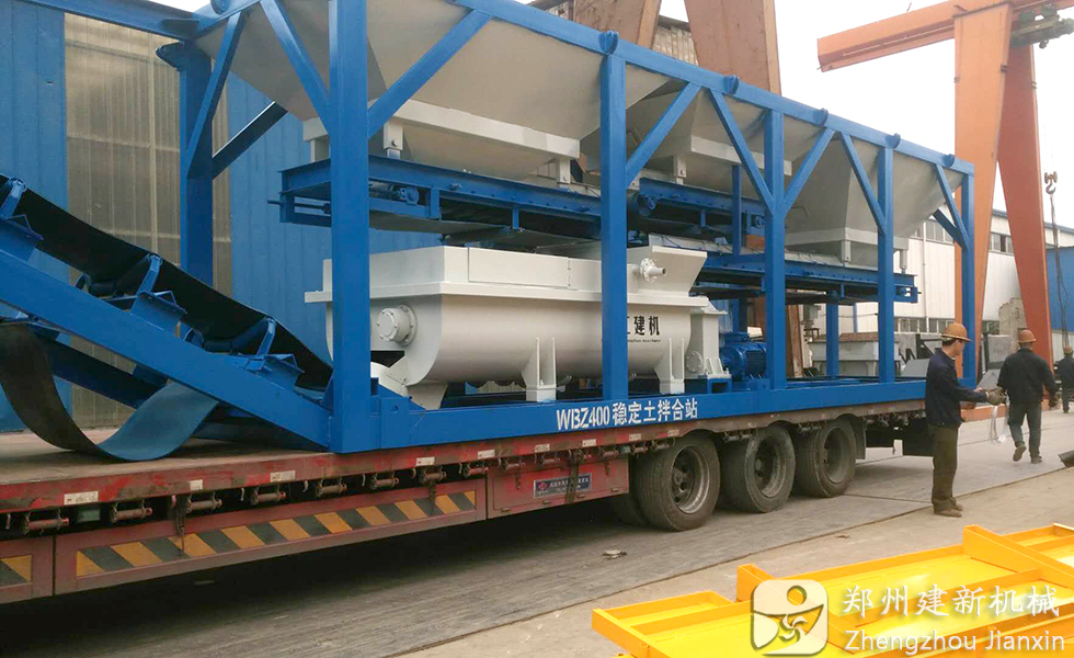 2019年5月23日,鄭州建新機械400穩定土拌合站一體機發往拉薩。據悉,該套穩定土拌合站是通過特殊的結構設計,以一個運輸單元集中了控制系統、配料系統、攪拌系統等,從控制、到稱量再到攪拌,再到最后的卸料所有程序都在這個運輸單元上進行。將設備抽拉或折疊使用拖車牽引就可以實現移動和轉移十分方便。