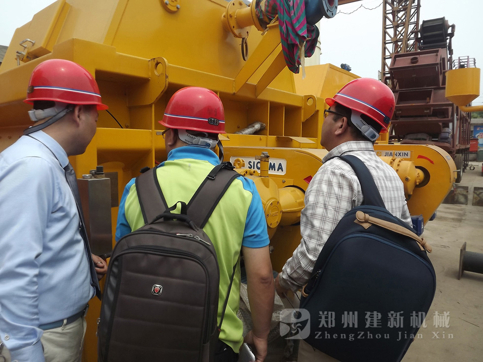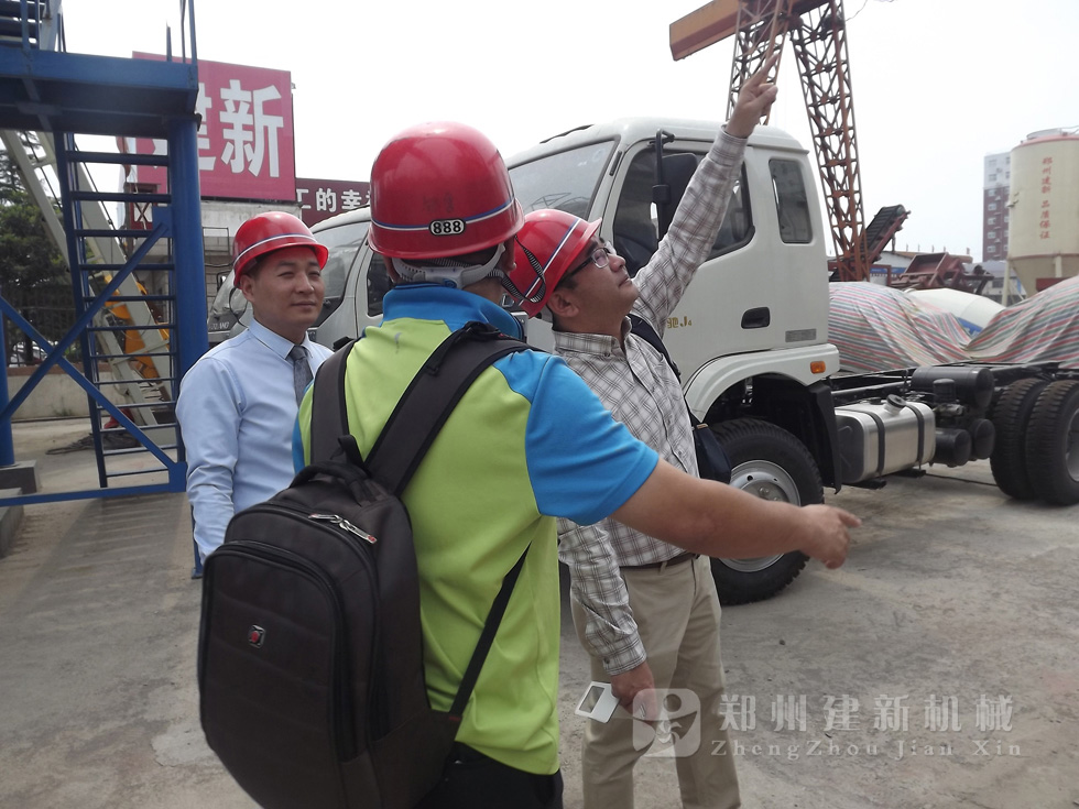 來自韓國的客戶在建新外貿部人員的帶下,參觀了大型混凝土攪拌站的設備,建新公司精湛的工藝、合理的設計,客戶贊不絕口,直挑大拇指。