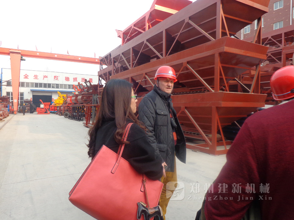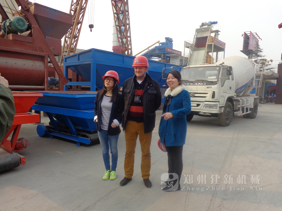 2014年11月,來自俄羅斯的客戶來到鄭州建新公司簽訂了兩套時產(chǎn)120方混凝土攪拌站設備的大訂單,下圖為建新公司銷售部劉經(jīng)理、經(jīng)理帶客戶參觀建新公司的生產(chǎn)車間及成品貨場。