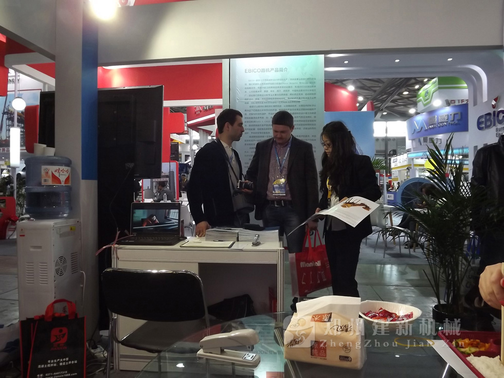 作為國內建筑機械行業里的一支跑軍,鄭州建新機械制造有限公司在2015年上海寶馬機械展銷會上,展示了建新公司大型混凝土攪拌站、穩定土拌和站全套設備,及建新JS系列雙臥軸混凝土攪拌機、PLD砂石配料機、水泥倉等單機設備。
