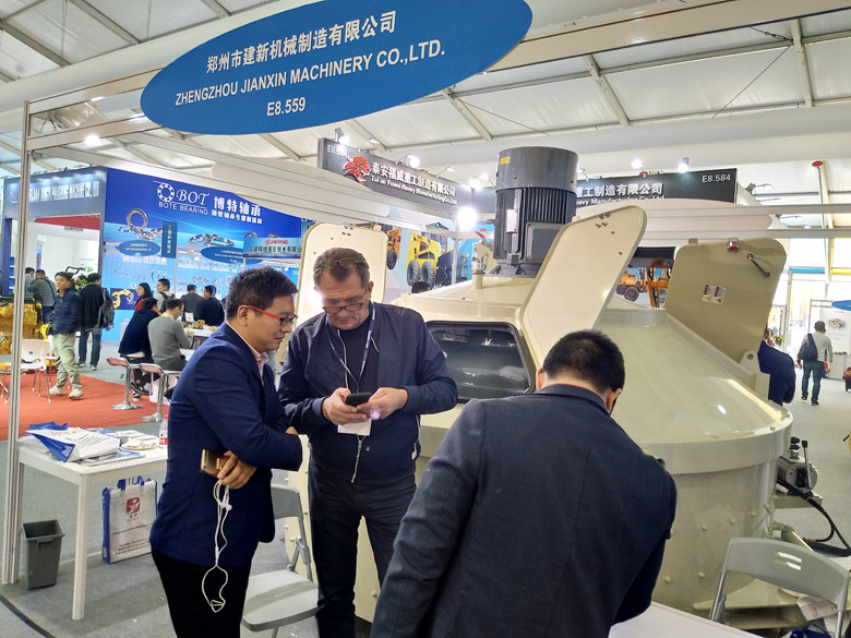 2018年上海寶馬展在上海舉辦,鄭州建新機械積極參與此次展會,展會上我們向參觀的客戶和同行展示了我們新型技術研發的立軸行星式攪拌機,我公司工作人員向客戶詳細的講解了該設備的新技術和性能。